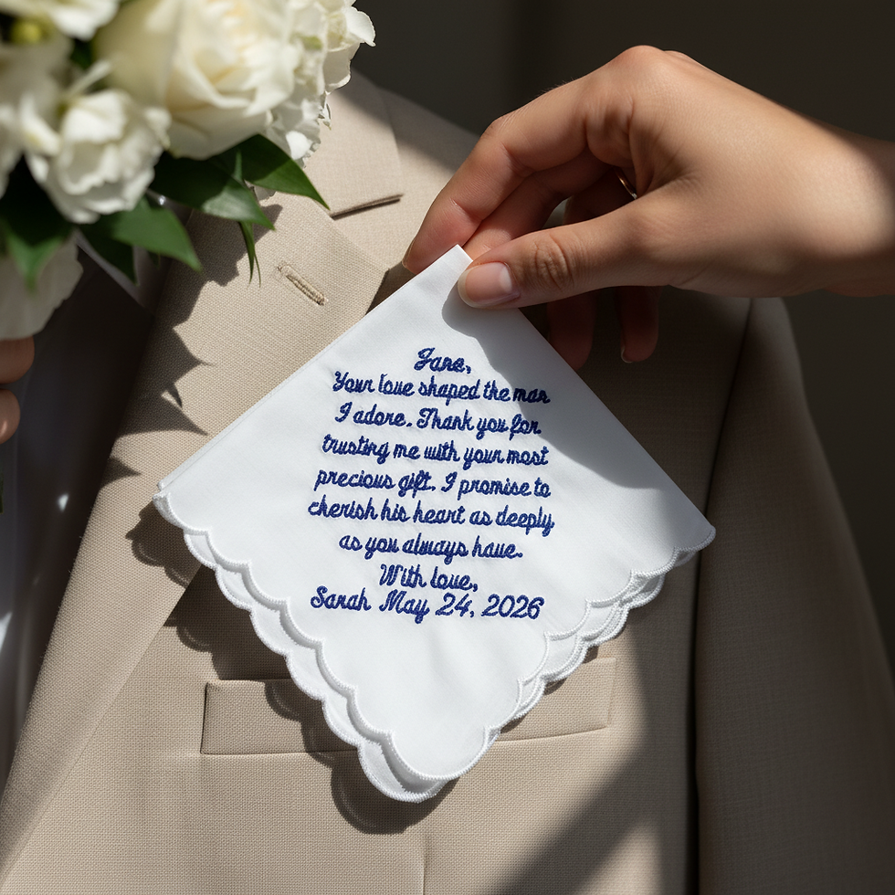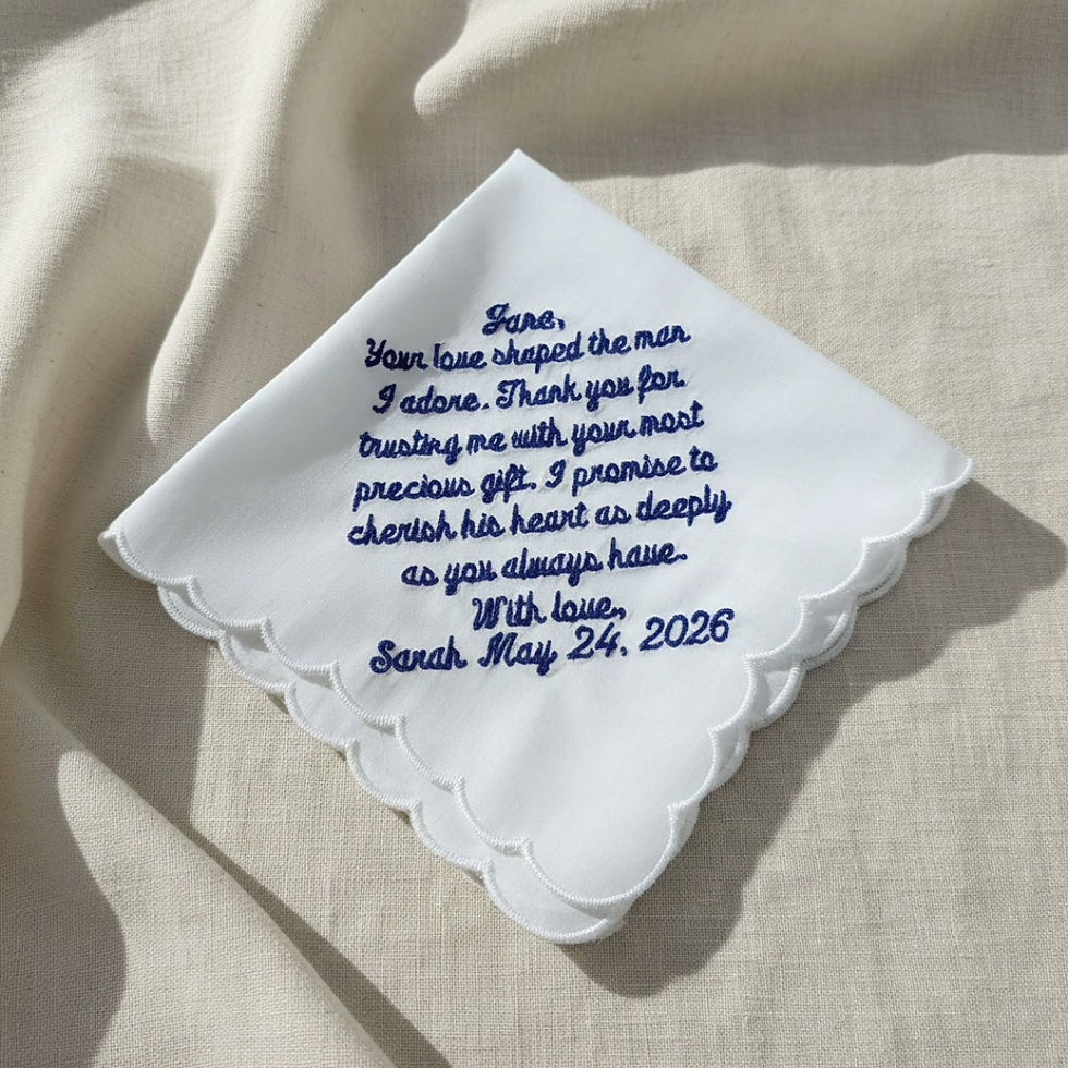 Personalized Mother of the Bride Gift, Embroidered Wedding Handkerchief